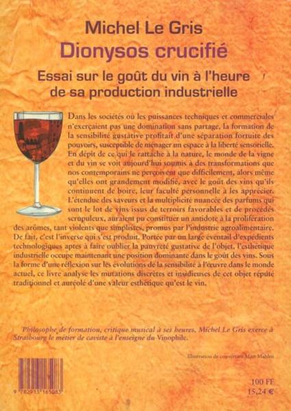 -Dionysos crucifié, essai sur le goût du vin à l’heure de sa production industrielle. Michel Legris, édition Syllepse. Un livre qui donne à réfléchir.