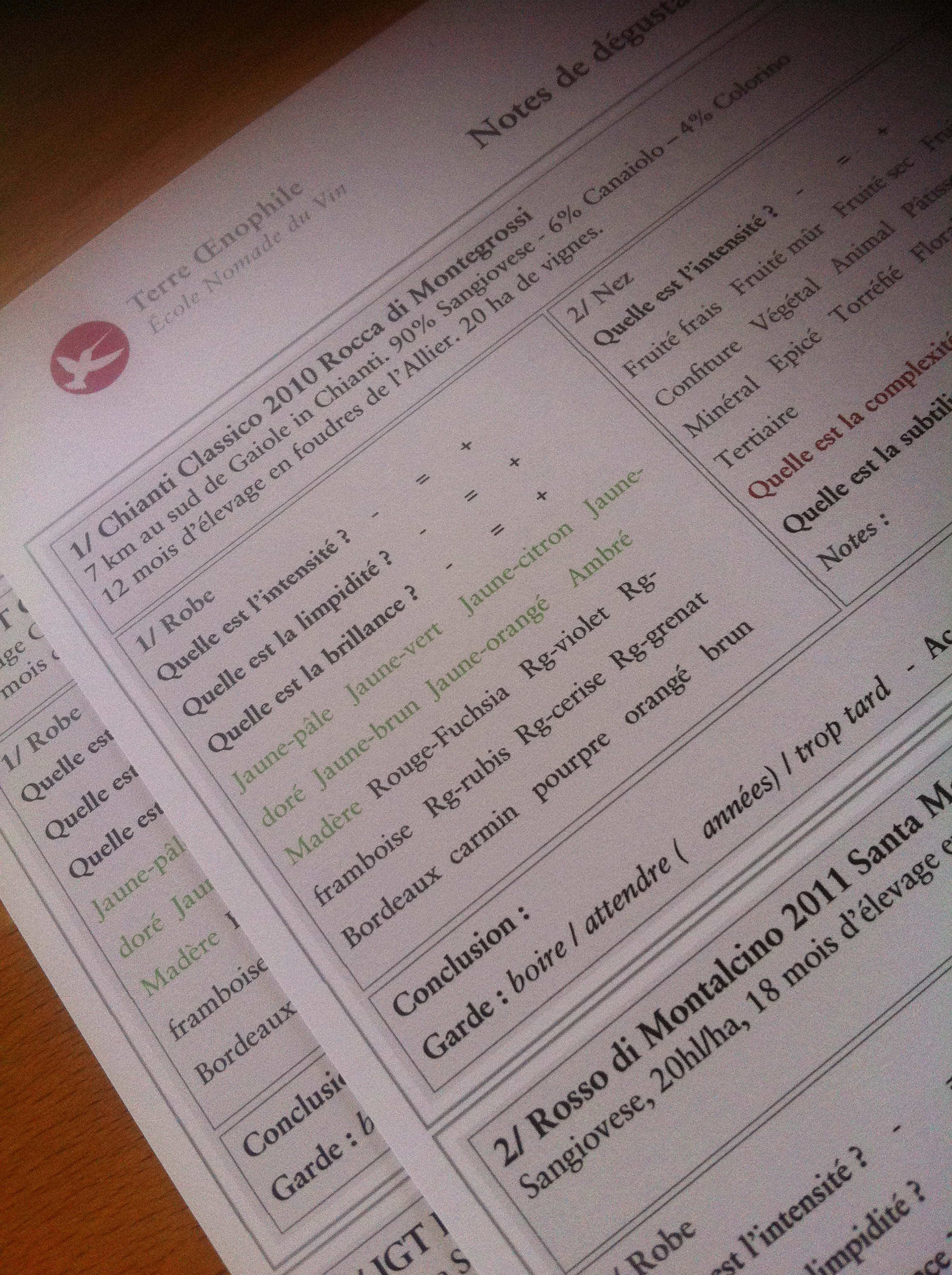 Petit résumé de la dégustation sur le thème des vins de Toscane :