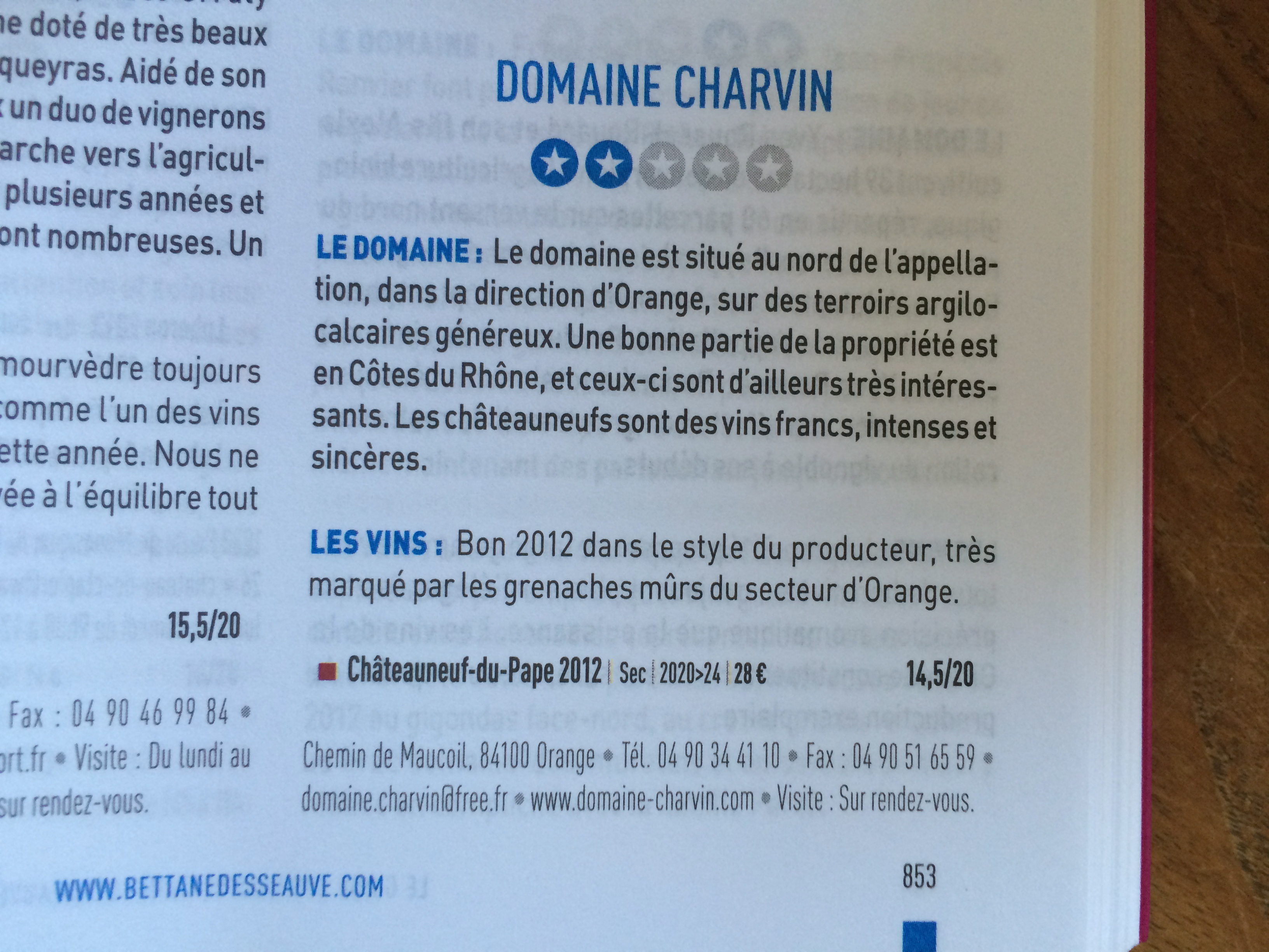 Par exemple, l’excellent domaine Charvin (Châteauneuf-du-Pape) traité par B & D donne quelque chose d’assez laconique et peu encourageant :