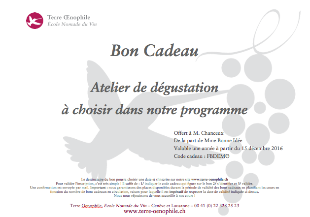 Un bon cadeau pour un cours d’oenologie chez www.terre-oenophile.ch, comment ça fonctionne ?