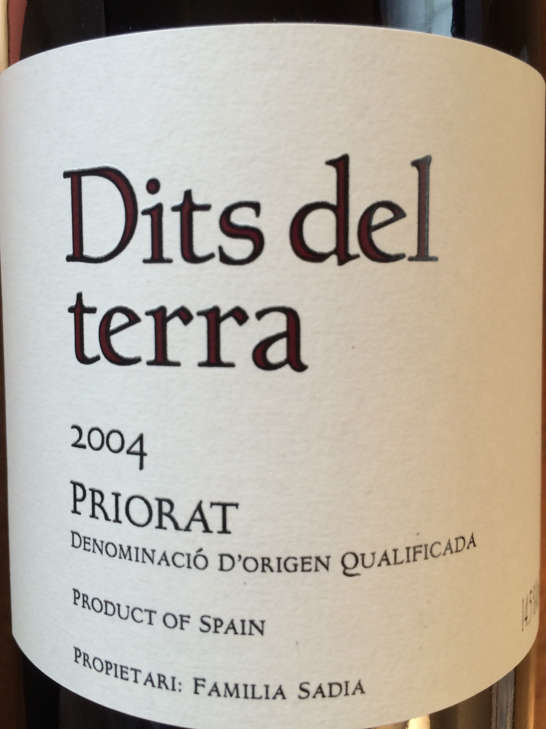Dits del terra 2004, Terroir al Limit : tout ce qu’on aime dans les vins du Priorat, puissance et finesse, fruits mûrs, minéralité. Belle ouverture aromatique. A boire et attendre.