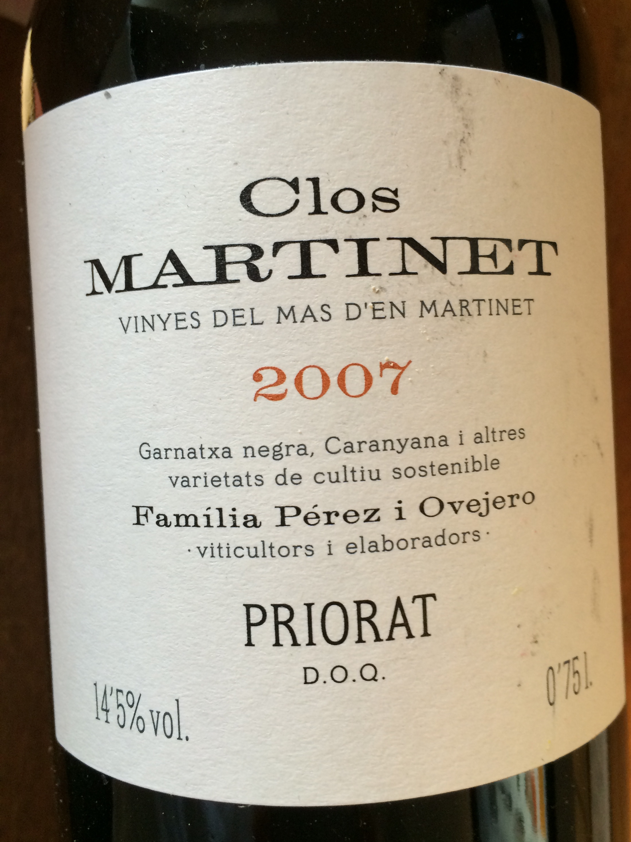 Clos Martinet 2007 , Mas Martinet : patiné, homogène, élégant, voici un vin qui commence à donner sa mesure.