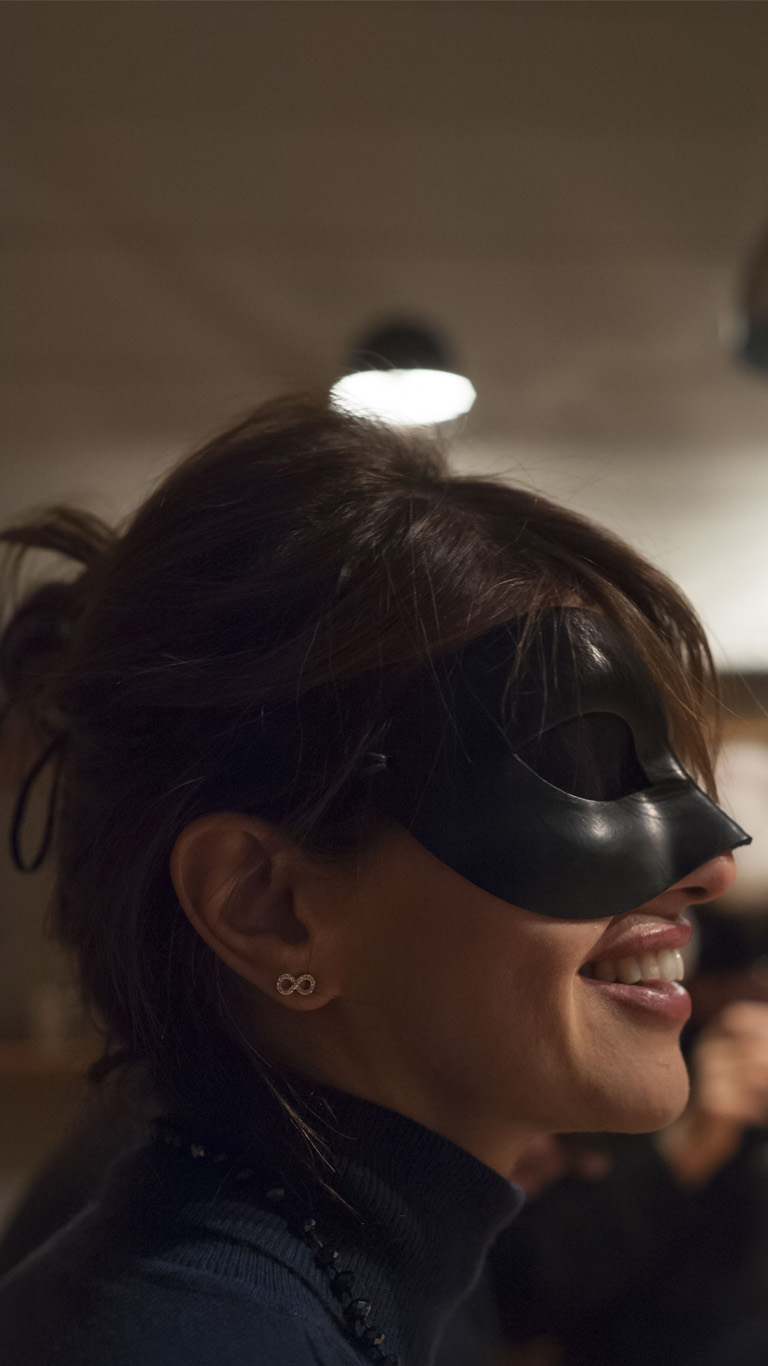 Avec en exclusivité mondiale (si, si…), la dégustation avec des loups vénitiens, un peu retravaillés. En effet, priver du sens de la vue les participants n’empêche pas d’apporter de l’esthétisme, vu de l’extérieur …