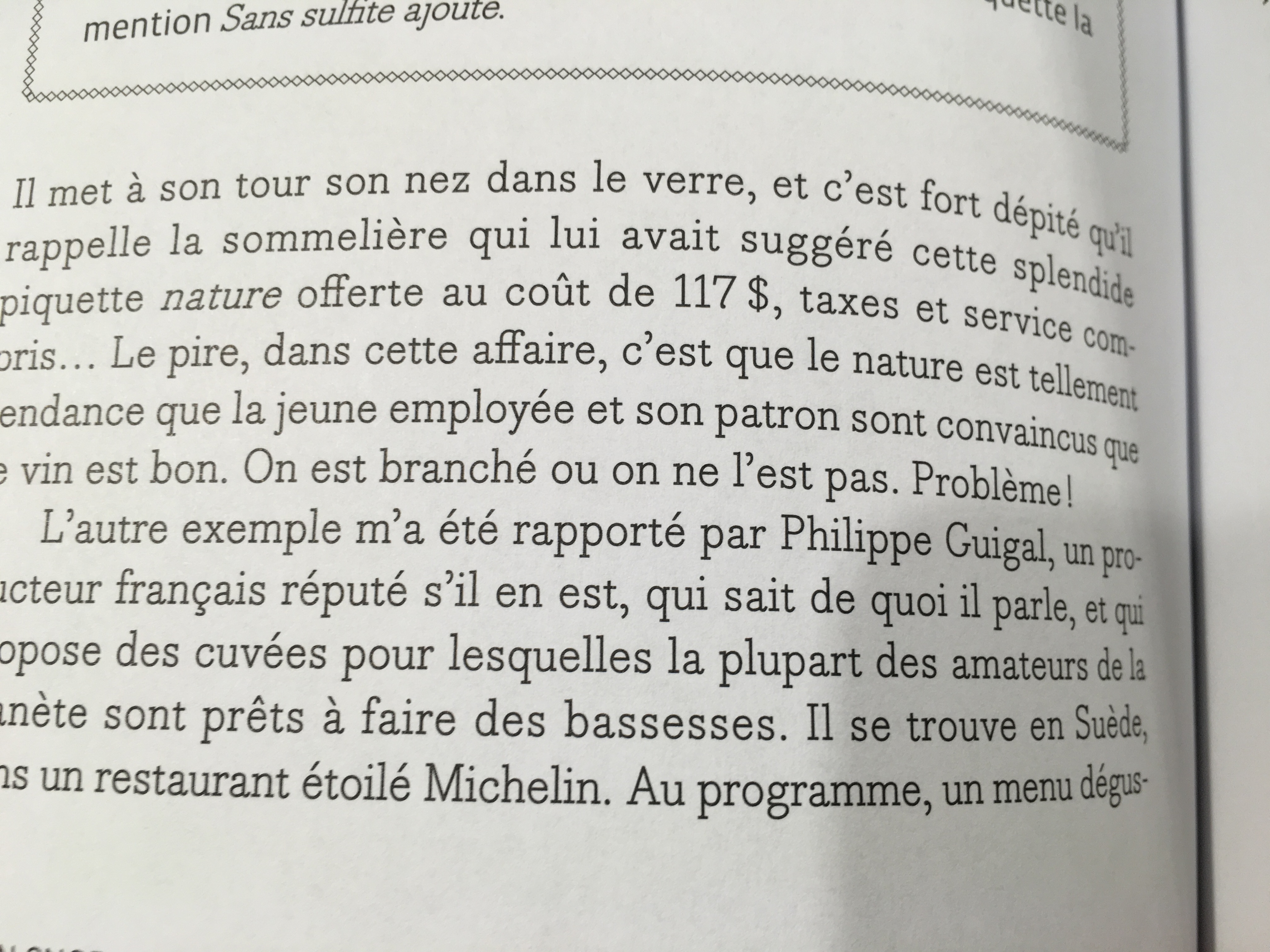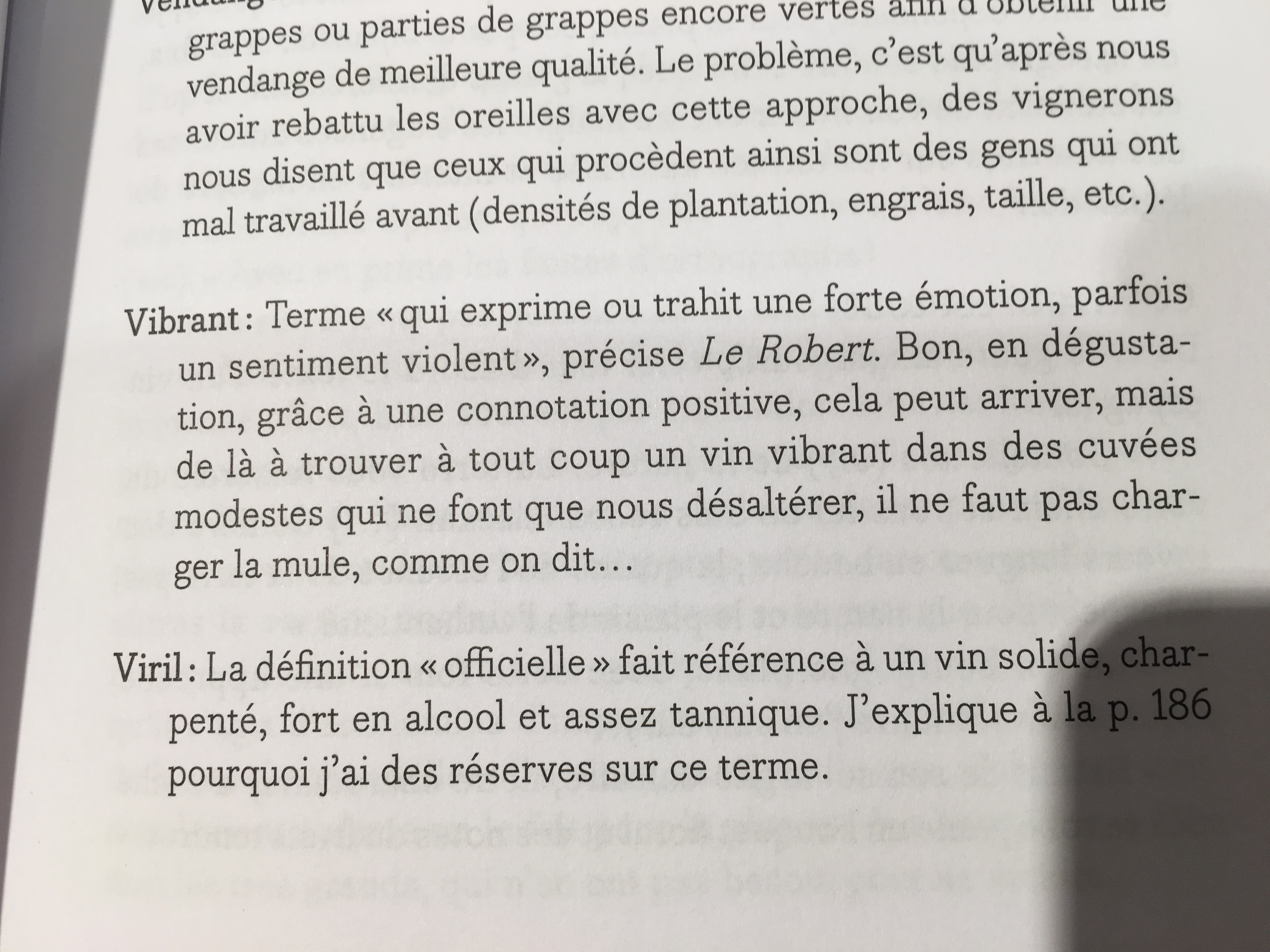 Ce qui est principalement dérangeant dans ce livre et la raison pour laquelle je le critique si ouvertement, c’est le parti pris contre des vignerons et des buveurs passionnés et sincères. Oui, des buveurs, des gens qui aiment vraiment le vin et qui, oui, prennent du plaisir avec le vin en toute convivialité, que ça plaise ou pas. A bon entendeur.