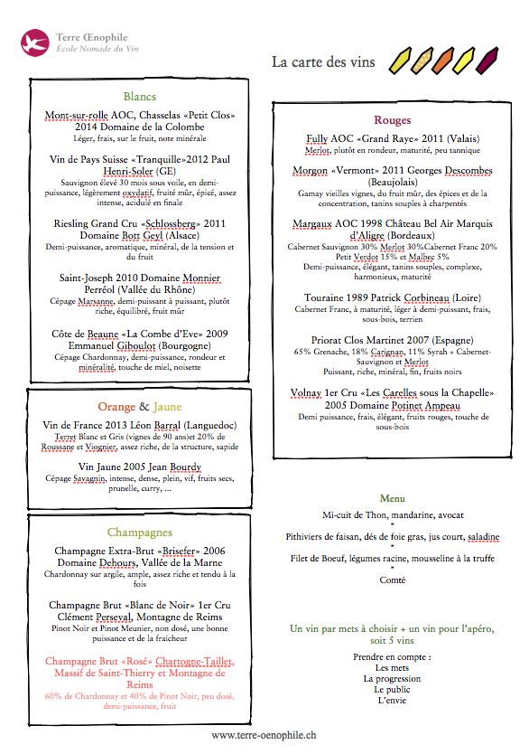 Bonnes nouvelles de la Terre Oenophile, Ecole Nomade du Vin (Genève, Lausanne, Fribourg, Neuchâtel, La Chaux-de-Fonds et Vevey) www.terre-oenophile.ch