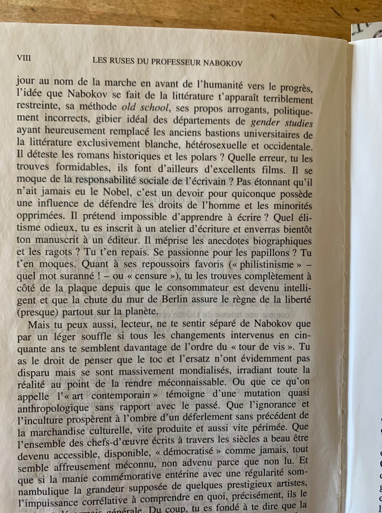 N.B. 2 Nabokov a clairement une approche élitiste de la littérature mais ce qui nous intéresse surtout c’est sa manière de responsabiliser le lecteur face à l’oeuvre et de l’inciter indirectement à en faire partie.