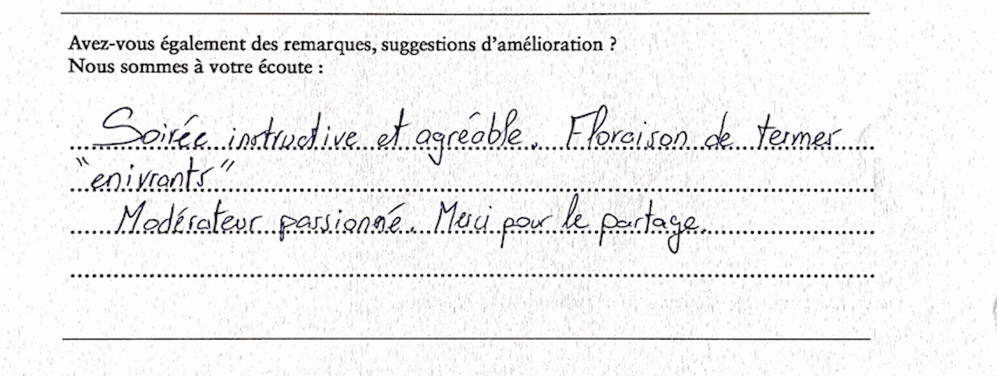 Un grand merci à nos participant.e.s d’avoir pris le temps de nous offrir leur avis !